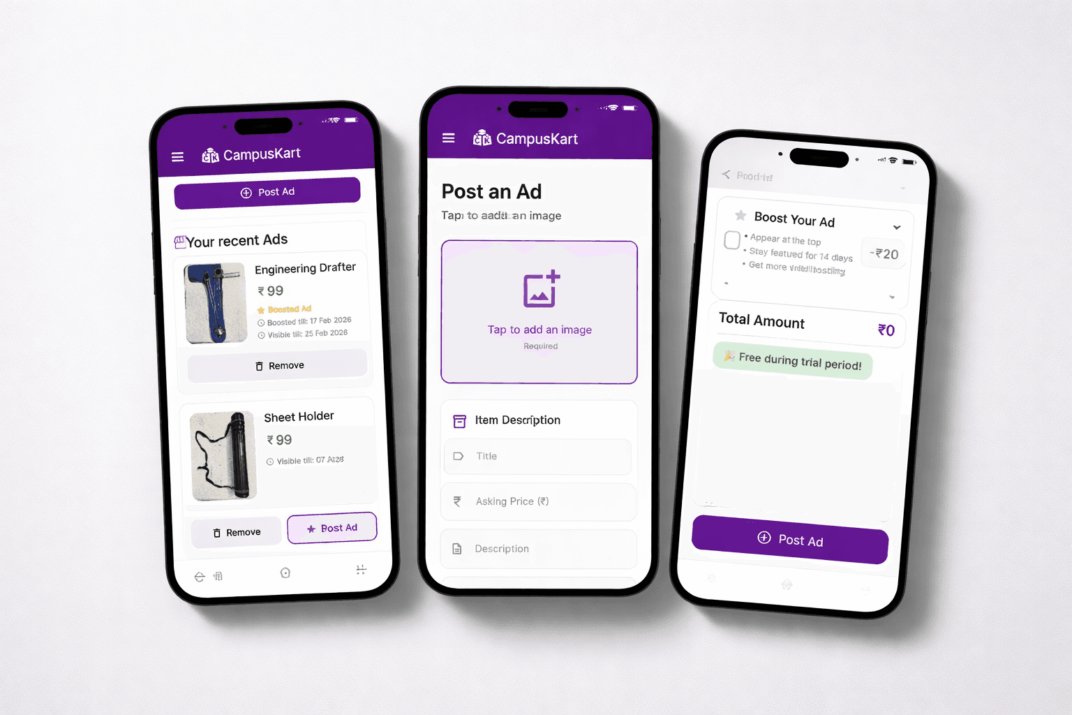 The goal was to create a digital experience that reflects CampusKart's confidence, clarity, and momentum. From identity to interface, every element was built to reinforce trust and guide users through key information with ease.
